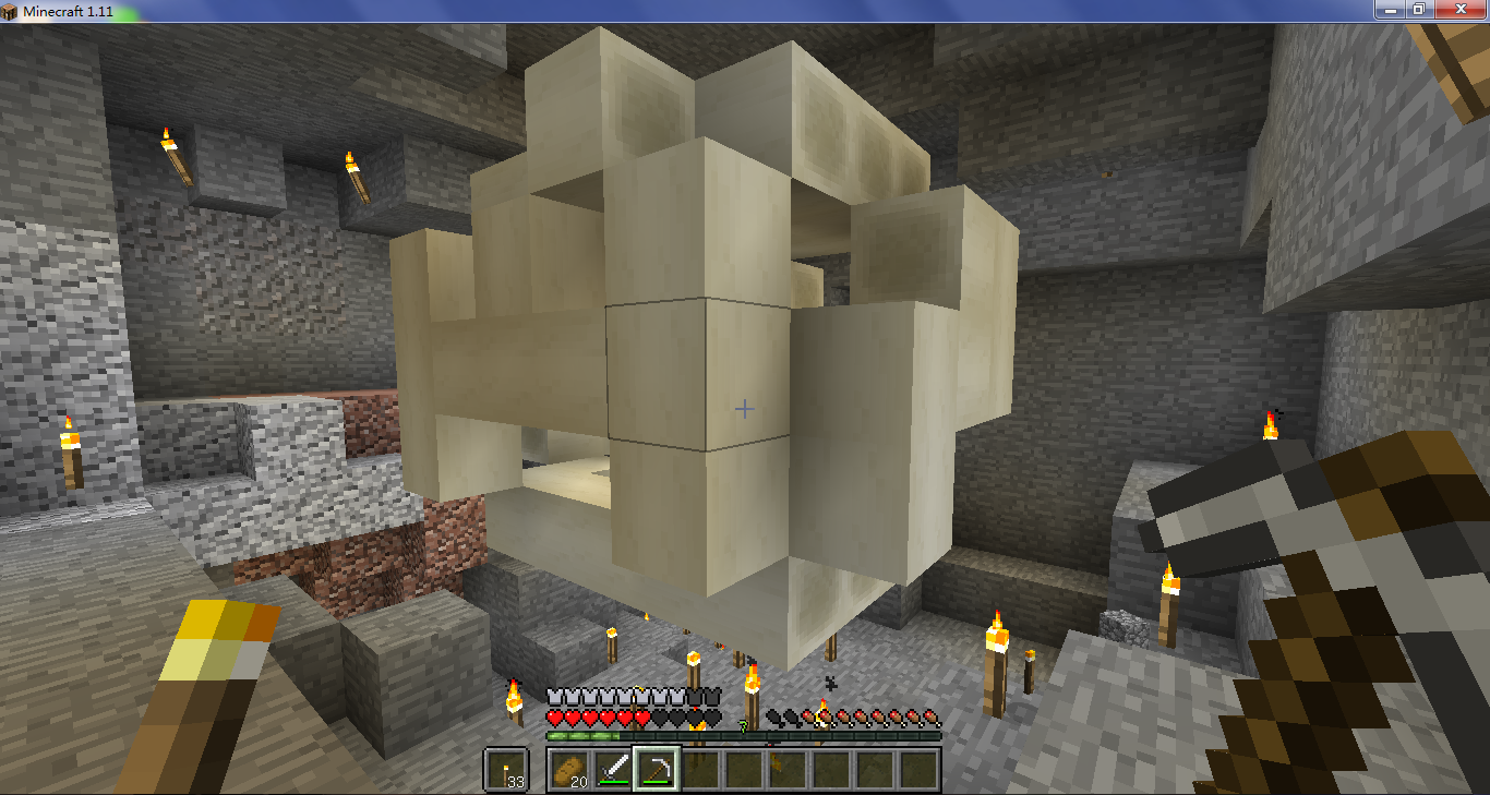 这是1.11原版生存,没有任何mod,第一眼看到它还在想这是啥东西,从未见过啊,挖开周边方块看到了个这个形状的结构,感觉很奇怪怎么出现这个东西,问群里的人说是化石,比较稀少,2020还能发现minecraft的新元素,这游戏真不错呀!
