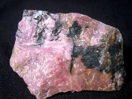 蔷薇辉石是一种硅酸盐矿物,产于各种锰矿石中。它主要被用作装饰石料或饰品及雕塑品。蔷薇辉石的晶体为板状或板柱状,晶体的集合体为粒状或块状,浅粉到红色有玻璃光泽。蔷薇辉石表面被氧化后常出现一些黑色,那是锰的氧化物和氢氧化物形成的薄膜。