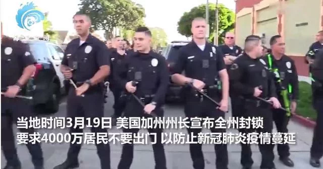 得到消息后,洛杉矶警方迅速出警,警察们排成一列手握枪械,不断向前移动,强制聚会者疏散。当地时间3月19日,美国加州州长宣布全州封锁。要求4000万居民留在家中不要出门,以防止新冠疫情蔓延。