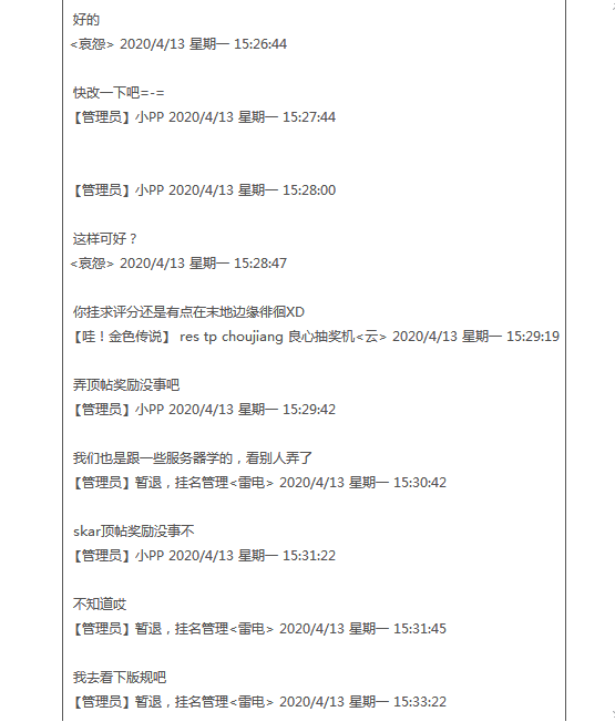 4-15-1:服务器版禁止使用多个小号、签到机器人等违规账号前来异常顶贴、刷浏览量等的行为;查实后将会临时冻结账号并回收服务器帖,请帖主本人于处理后 三日内 携带有效证据前往 末路之地 申诉;逾期未申诉或申诉不通过将会永久封禁账号并记作3星失信人员,回收服务器板块发帖权限。