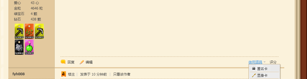 匿名发帖是不清楚,我只知道匿名卡可以匿名自己回复233