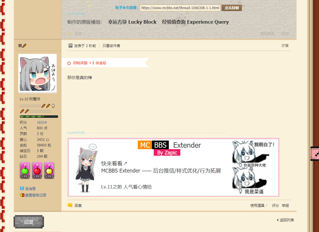A:爬取最新锭贴,如果有就强制打开这个贴,即使你打游戏也会给你弹出来。然后扫一眼,随便码几个字抢完即可