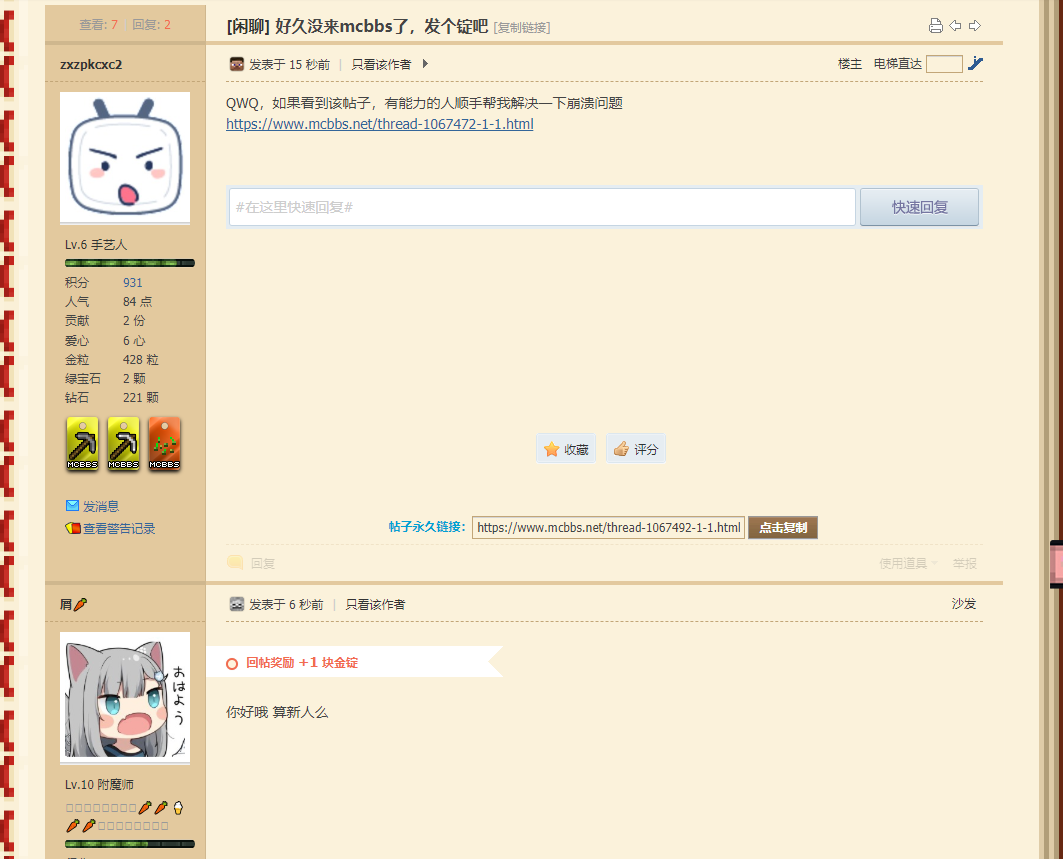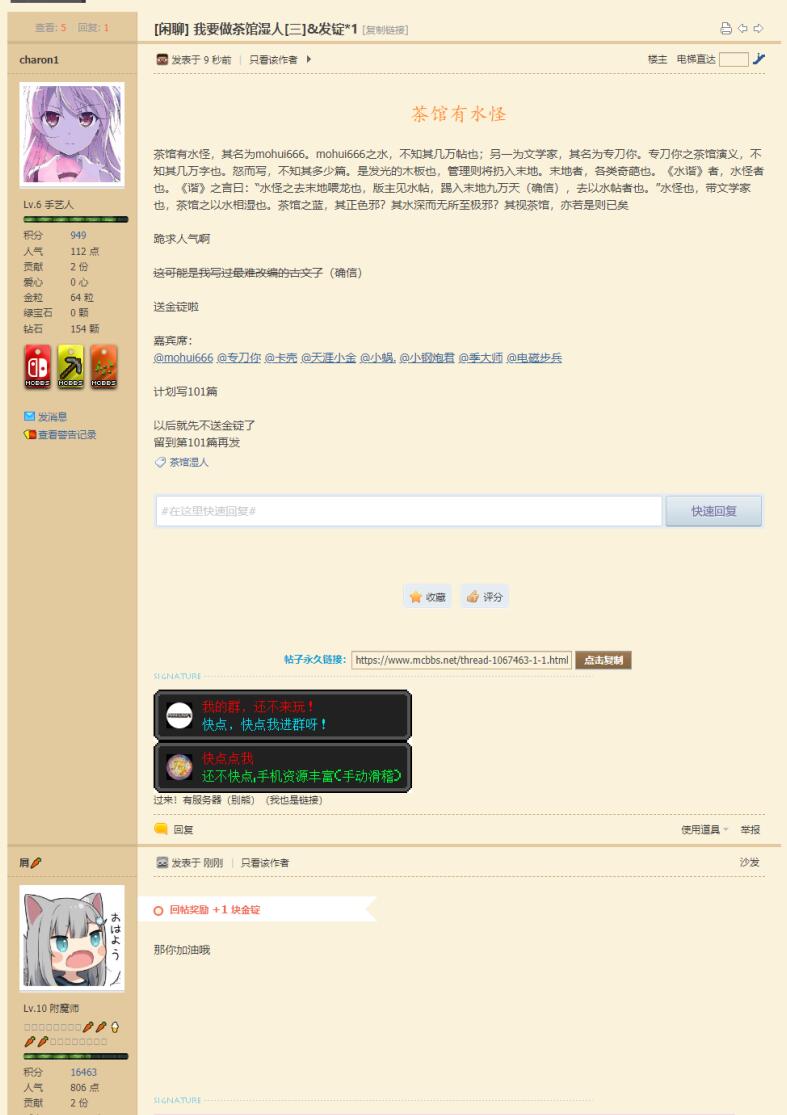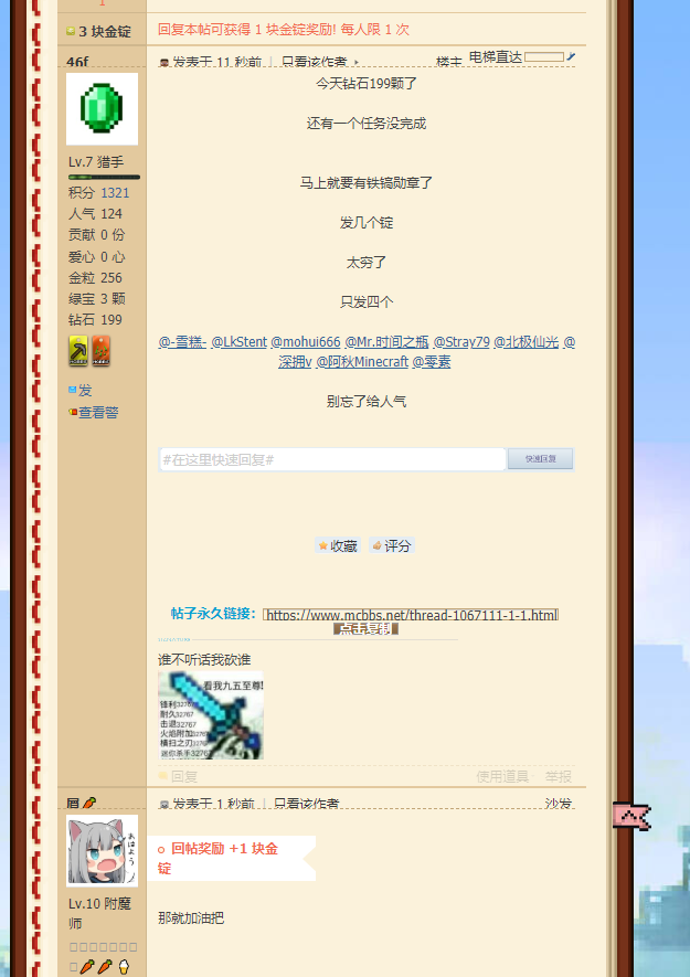 手动回复就更加具有感情,例如:恭喜楼主x级了,顺便恰个锭
