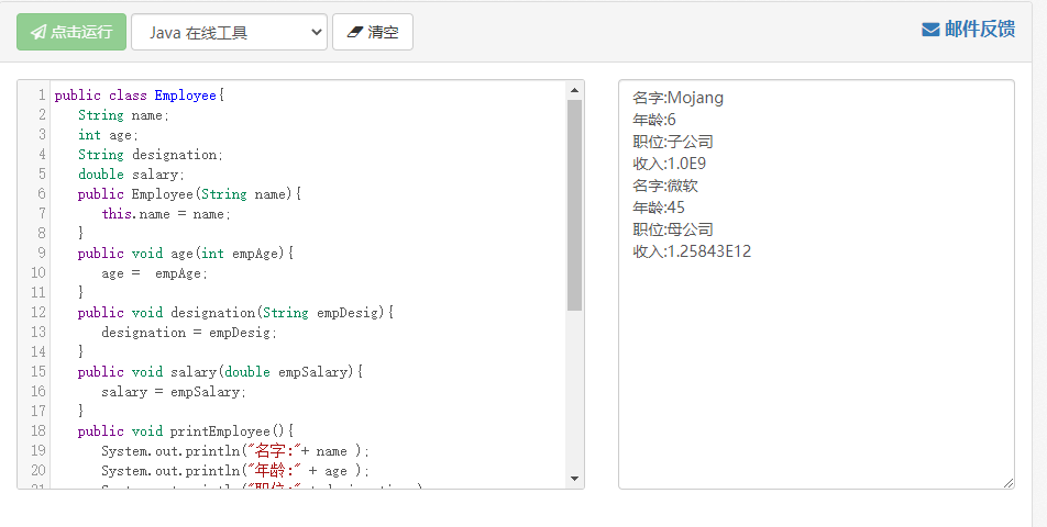 运行这段代码,你就知道我要调侃啥了:public class Employee{
