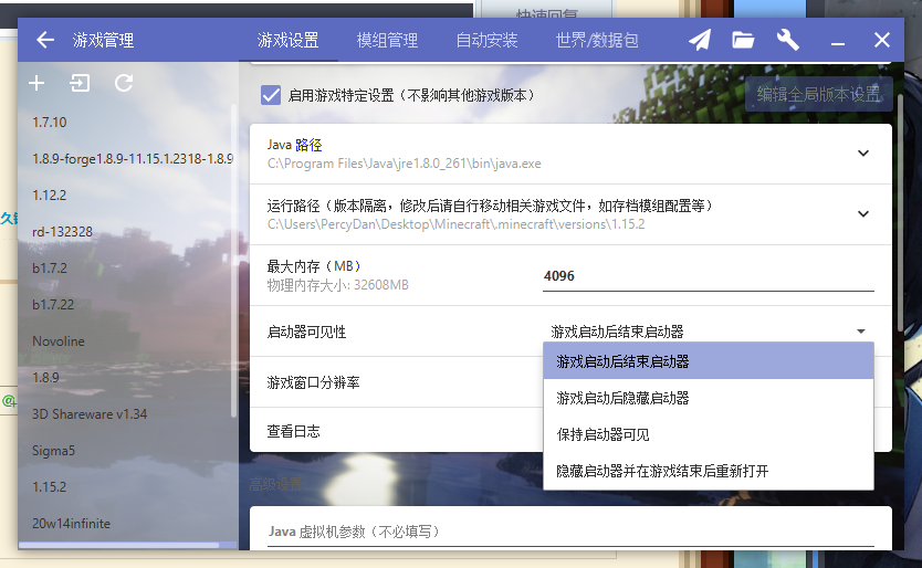 然后关掉Javaw之后又没啥影响,一样可以正常游戏