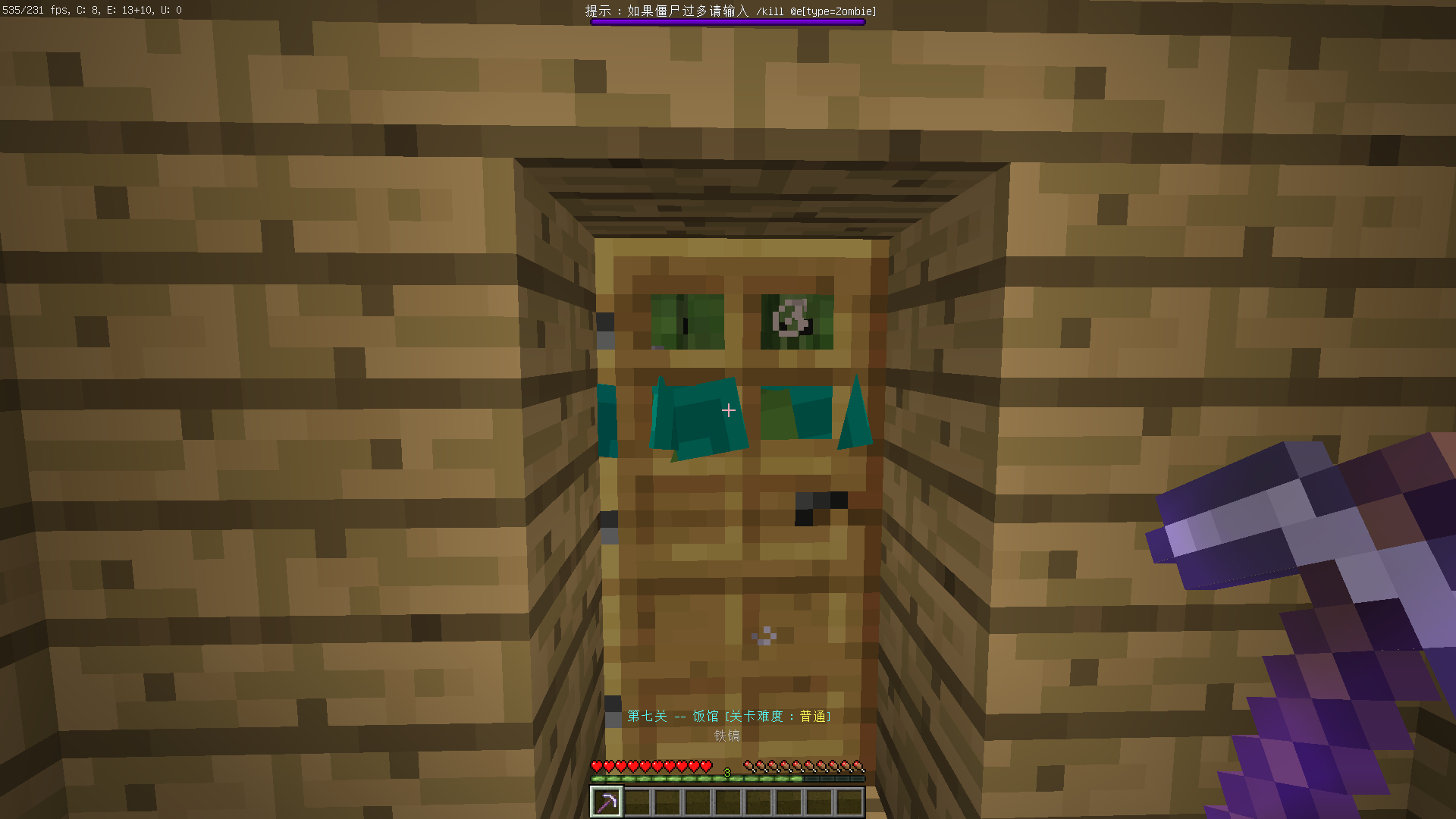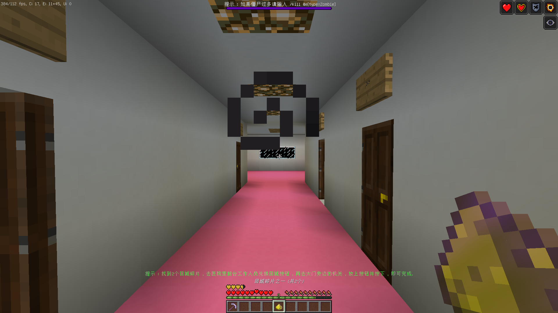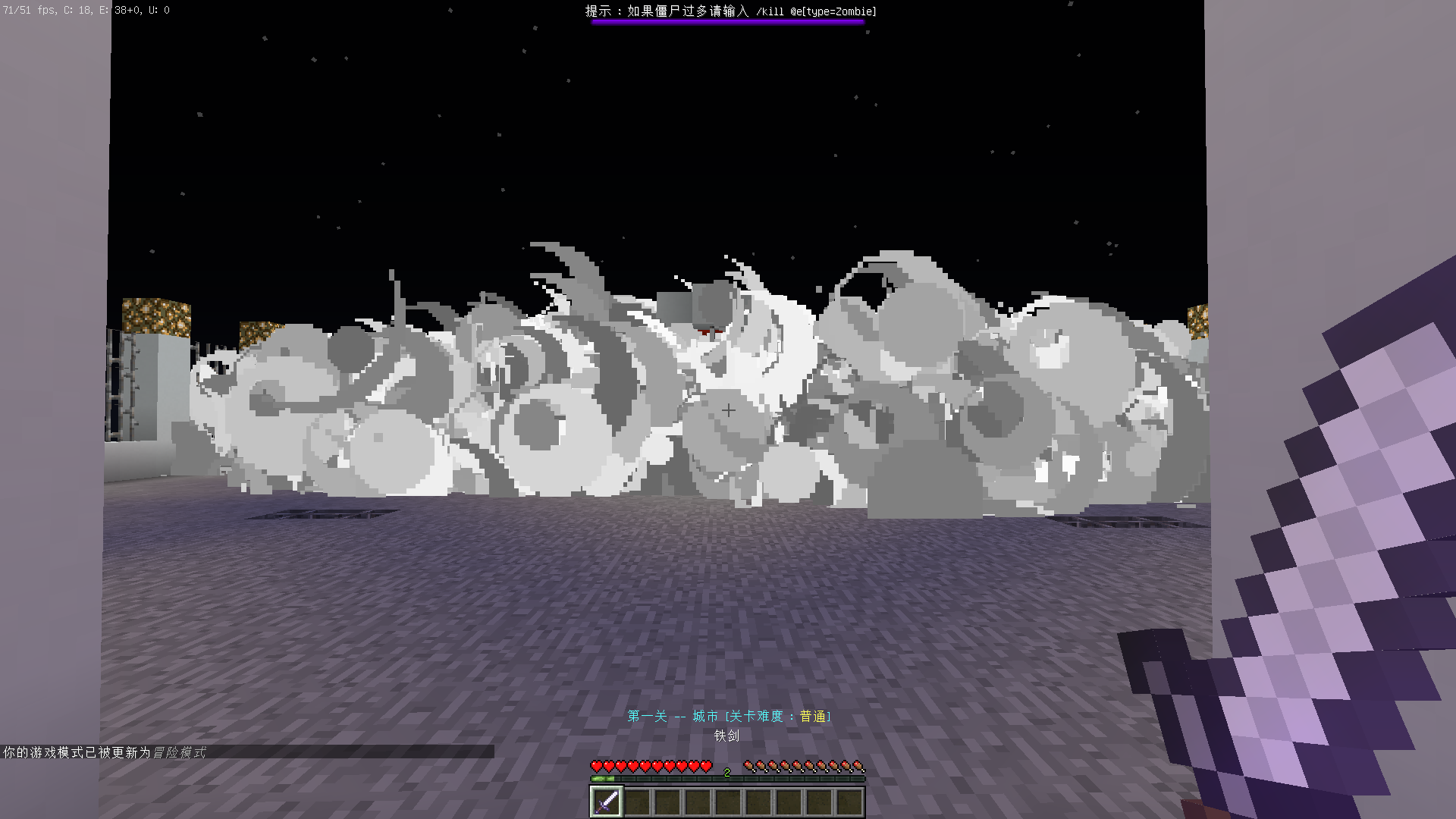 中途如果僵尸特别多导致游戏卡顿,请输入/kill @e[type=Zombie]进行解除,