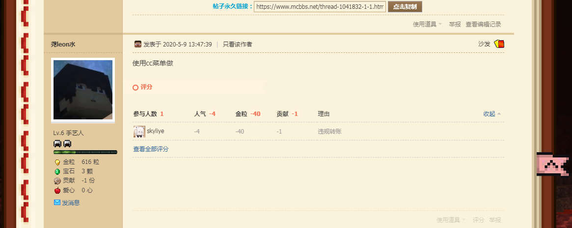 也就是通过悬赏贴给另外一个号转钱,给抓住了就按照版规处罚了√
