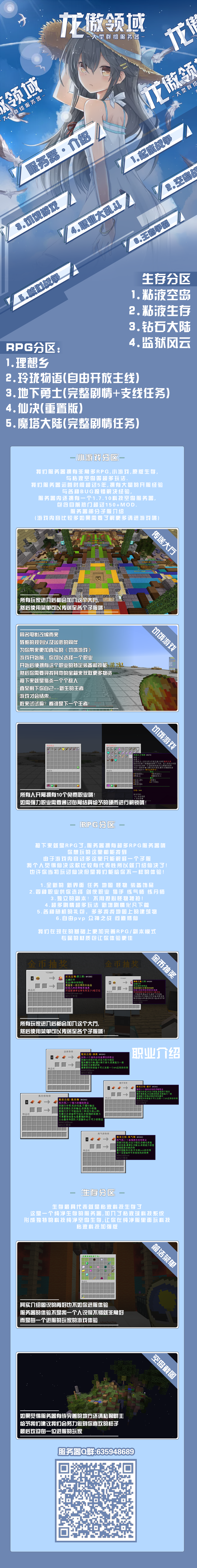 ![]() 1.起床战争 2.空岛战争 3.饥饿游戏 4.职业乱斗 5.核心战争 6.王者争霸 1.玲珑物语 2.地下勇士 3.仙决(重置版) 4.魔塔大陆(完整剧情) 5.铸魔大陆 1.粘液空岛 2.粘液生存 3.钻石大陆 4.监狱风云 ![]() 我们服务器拥有非常多RPG,小游戏,原版生存,粘液空岛等超多玩法 服务器运营时间超过5年,拥有大量开服经验. 服务器采用高配机器保证玩家游戏体验. 超多子服供你选择 ![]() 所有玩家登录后都会传送至服务器大厅,然后使用菜单传送至各个子服. ![]() 根据同名电影改编的一款MC小游戏 残酷的规则以及凶恶的同伴 为你带来更加真实的饥饿游戏 游戏开始前你可以选择一个职业 开始后便拥有这个职业的特殊装备与技能 然后寻找宝箱来获取更多物资 接下来就开始猎杀你遇到的每一个敌人 直至剩下你自己-新生的王者 游戏才会结束 你敢来试试吗? 看谁是下一个王者 所有人开局拥有10个免费职业哦! 如需强力职业需要通过每局结算的硬币进行解锁哦! ![]() 我们服务器拥有超多RPG服务器哦 你想玩的这里都能找到 由于游戏内容过多这里只能解释一个子服 我个人觉得仙决这款比较有代表性所以我们就介绍仙决了! 也许你当初玩过仙决但是我们能给你不一样的体验! 全新的 新界面 任务 地图 怪物 装备饰品 四种职业供你选择 剑侠职业 猎手 练气师 练丹师 独立的副本!不用担心怪物被抢! 超多剧情超多玩法 新增剧情化凡下篇 各种随机的礼包,多多找找地图上的建筑物 自由pvp 众神之战 问道修仙 我们在现在的基础上更加完善RPG/副本模式 专属的材质包让你体验更佳 ![]() 生存最具代表就是粘液科技生存了 游戏玩法: 这是一个纯净生存的服务器 加入了粘液球科技系统 形成独特的科技纯净空岛生存 让你在纯净服里面玩科技 粘液科技加强版 ![]() 其实介绍图说的再好也不如你进服体验 服务器的体验不是我一个人说很不错就非常好 而是每一个进服的玩家的游戏体验 如果觉得服务器有待完善的地方还请私聊群主 给予我们建议我们会努力做到你喜欢的样子 最后欢迎每一位进服的玩家 ![]() 服务器Q群:635948689 |