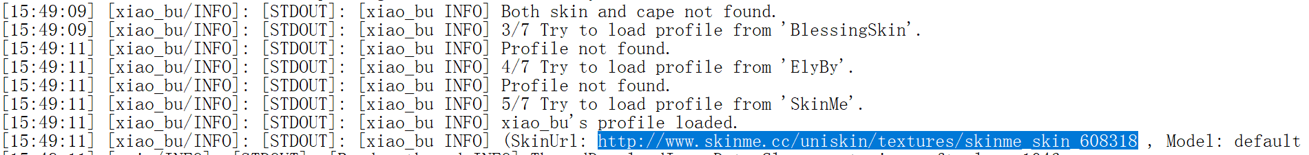 用户名填“xiao_bu”, 启动游戏,随便进个存档,等皮肤加载出来了看游戏日志