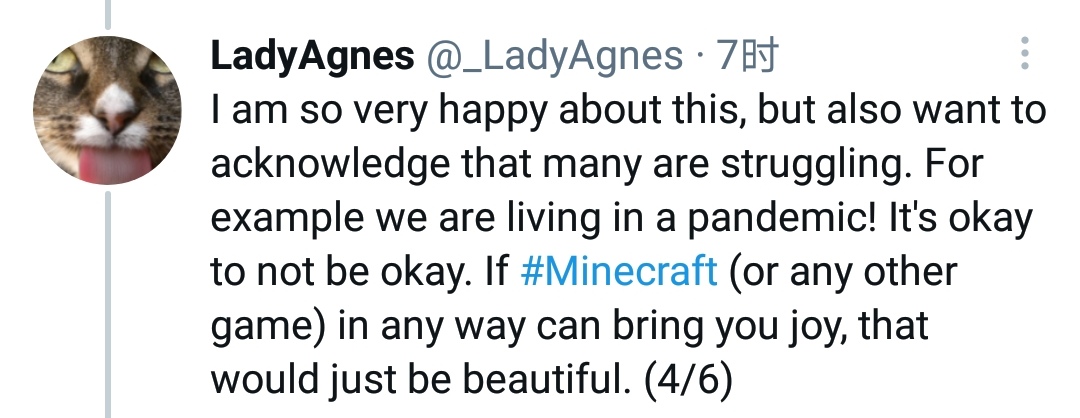 我对此感到很高兴,但也不得不承认许多人仍然过得很困难。就好像我们现在就在经历一场大疫情!不过没关系,如果Minecraft(或者是其他的游戏)能给你带来快乐,那就很好了。