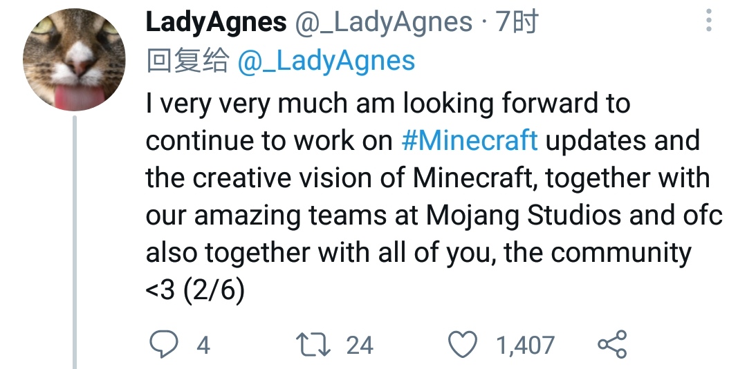 我非常非常期待接下来在Minecraft更新上的工作,不只是与Mojang Studios这一出色的团队,当然还有社区的你们<3