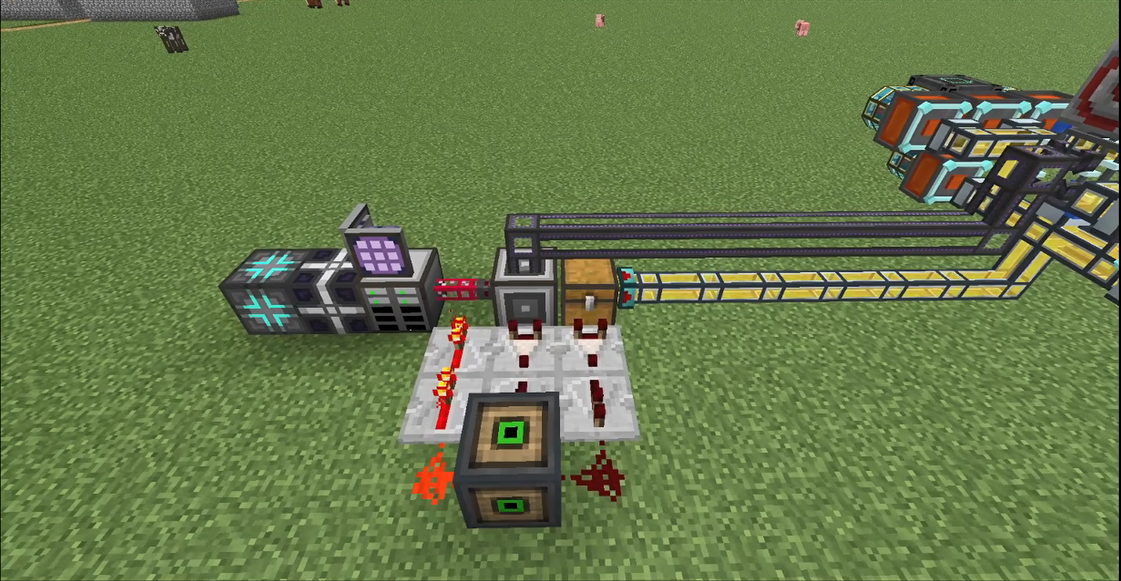 本教程之所以称为“广义阻塞模式”,是因为全程只用到了原版红石(为了呈现简洁,先用了压缩空间减小RS锁存器的体积,后面会拆开介绍并给出纯原版红石的电路结构)和AE2,至于后面黑箱部分使用的热力管道和龙之研究,它们只是黑箱而已,换成其他mod也完全没问题。