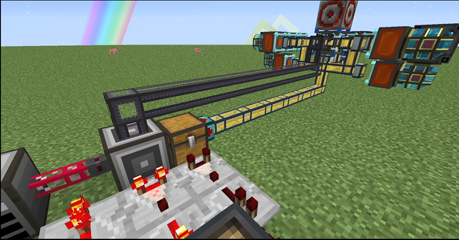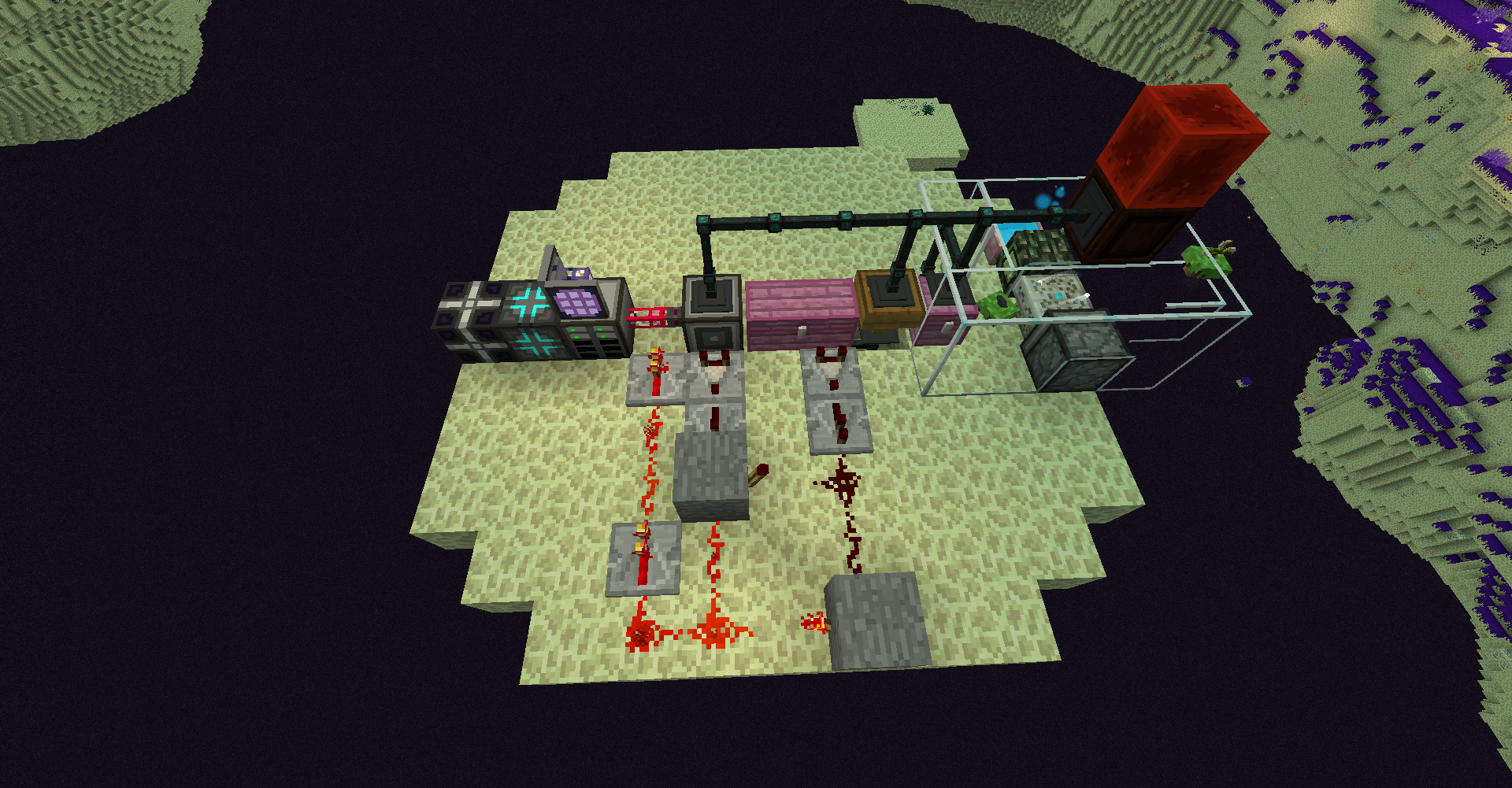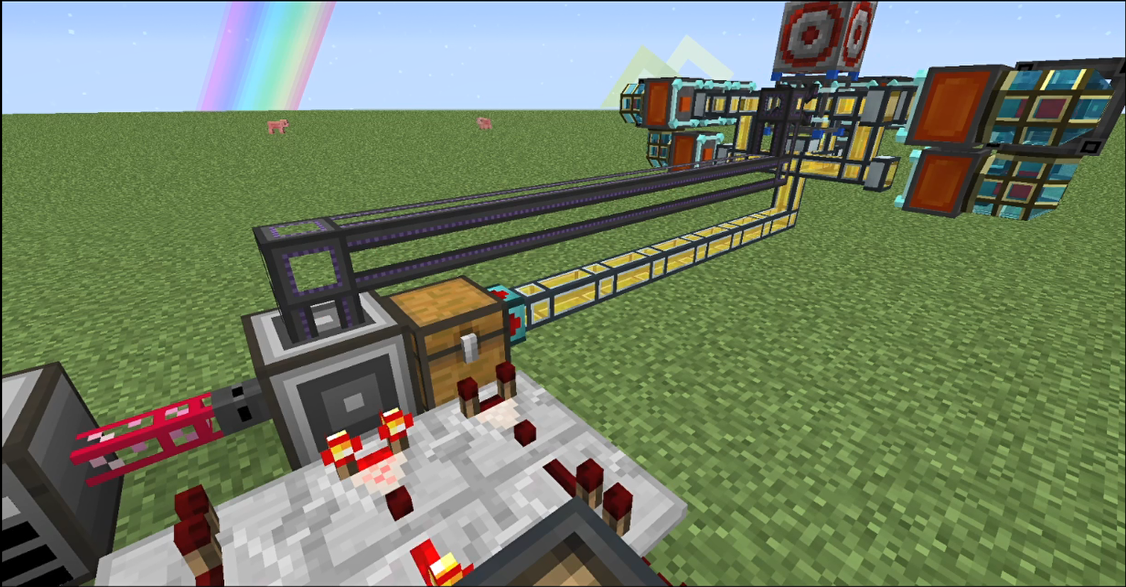 黑箱部分由任意管道系统进行分配,你甚至可以使用原版的漏斗,只要能把箱子里的原材料正确分配进复杂机械即可。我这里采用的是thermal管道。