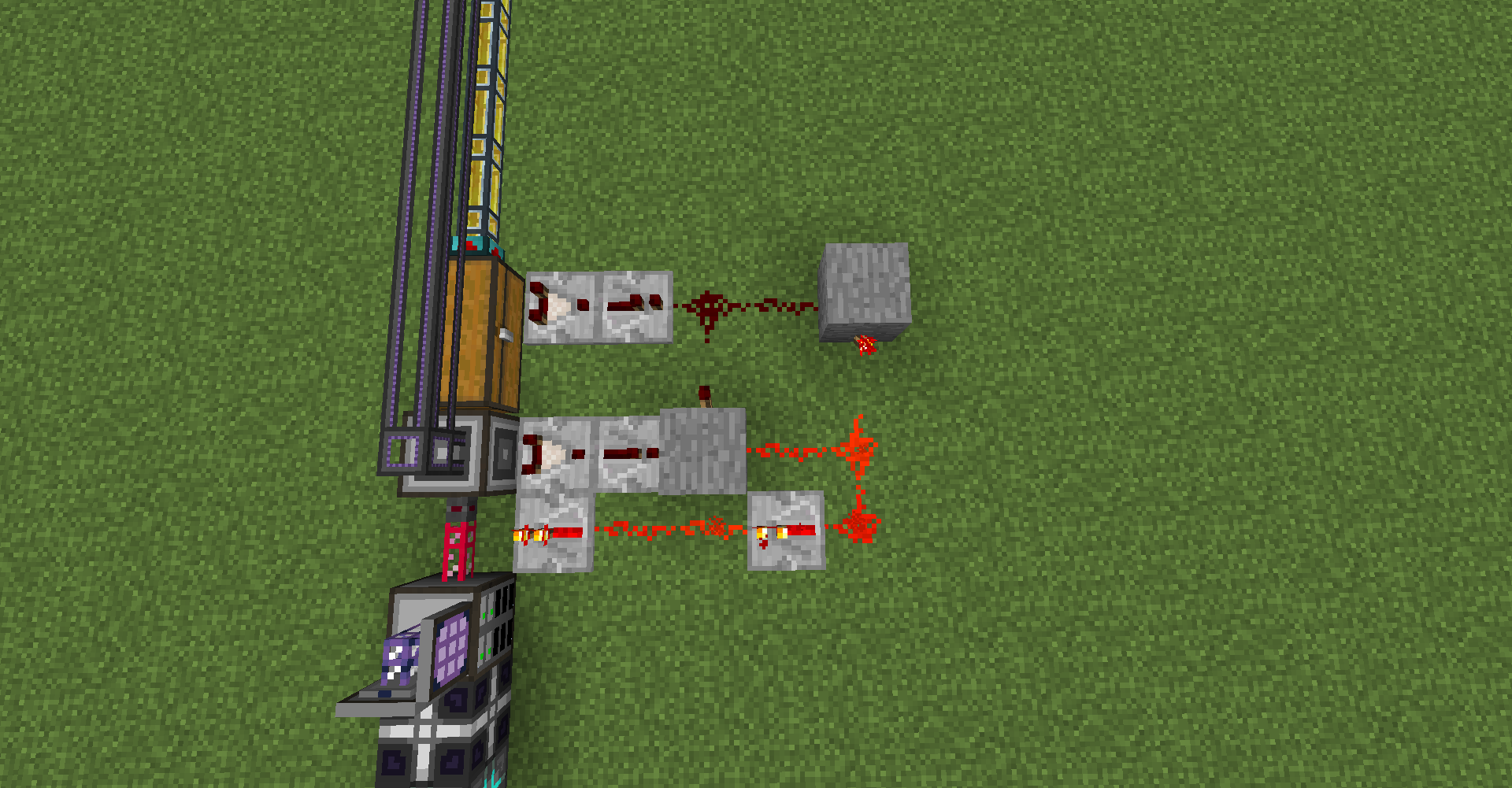 合成完毕后,产物被发送到ME接口内,而ME接口可以作为容器被红石比较器检测。这里将“产物进入ME接口”分为3个阶段,是因为红石信号的传递是需要时间的,并不能一瞬间完成。