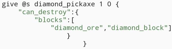 用法:{"can_destroy/can_place_on":{"blocks":["方块ID","方块ID"]}}\