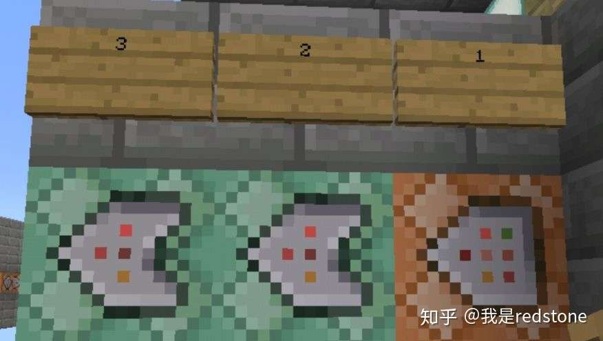 红石比较器这样放这个可以探测盔甲架的数量 这是使用后的效果