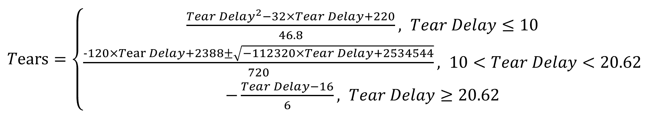 由于要求反函数,所以原式的Tear Delay这里用x代替,由于是分段函数,所以三段都单独求出,且将端点处的值求出即可: