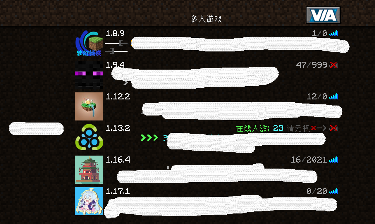 你可别说简简单单塞个ViaFabric然后整这么多服务器是为了测试,要测试玩家为什么不自己找服务器测试而要用你提供的服务器呢