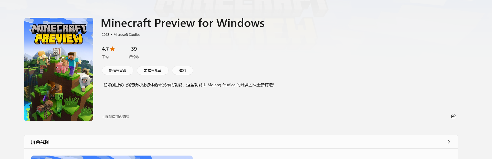 商店里面 没有下载按钮而且直接搜Minecraft Preview搜不到(我确认登陆的账号购买了win10版)