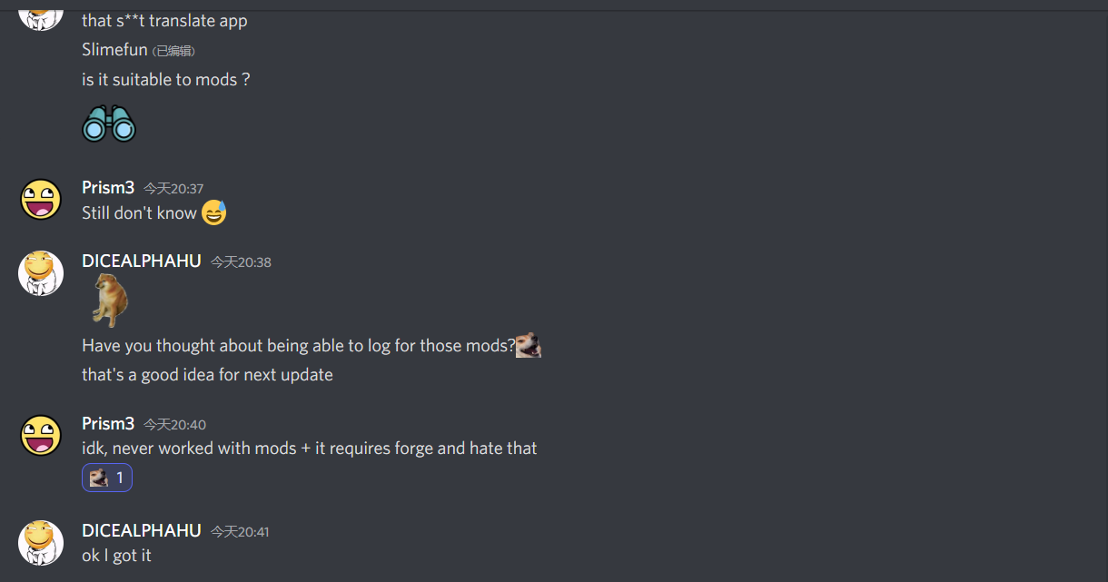 | 以下是Logger插件的一些预览(本插件已经进行汉化,这里放出的是汉化后的预览) 为了不影响观感,此条介绍隐藏,您可以手动打开查看 | 聊天记录