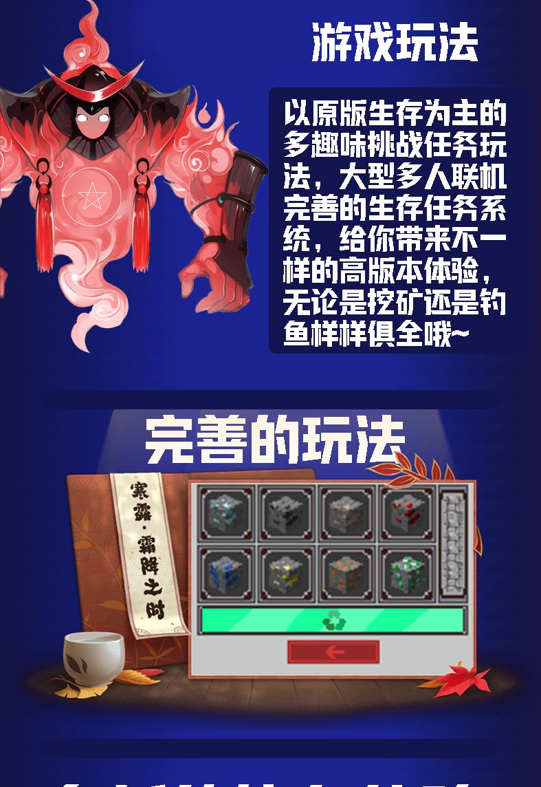 完善的生存任务系统,给你带来不一样的高版本体验,无论是挖矿还是钓鱼样样俱全哦~