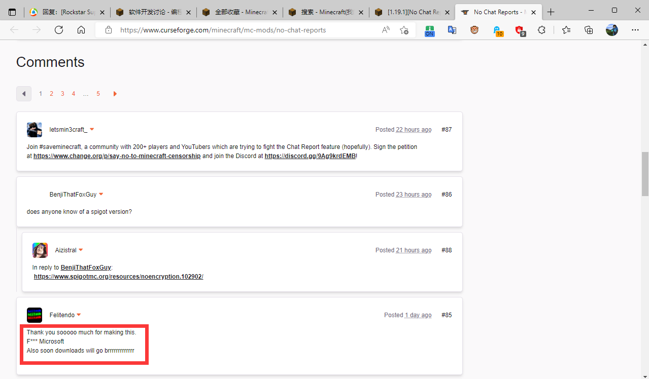 众所周知,非常重视游戏体验的Mojang在1.19.1中加入了聊天举报机制,即使是第三方服务器中的聊天也要受到Mojang的监管。、