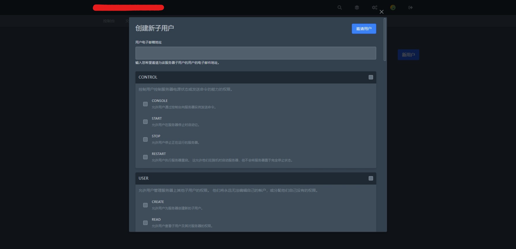 6. 多用户权限管理 ,可邀请其他面板用户管理同一台服务器并设置每个子用户的管理权限