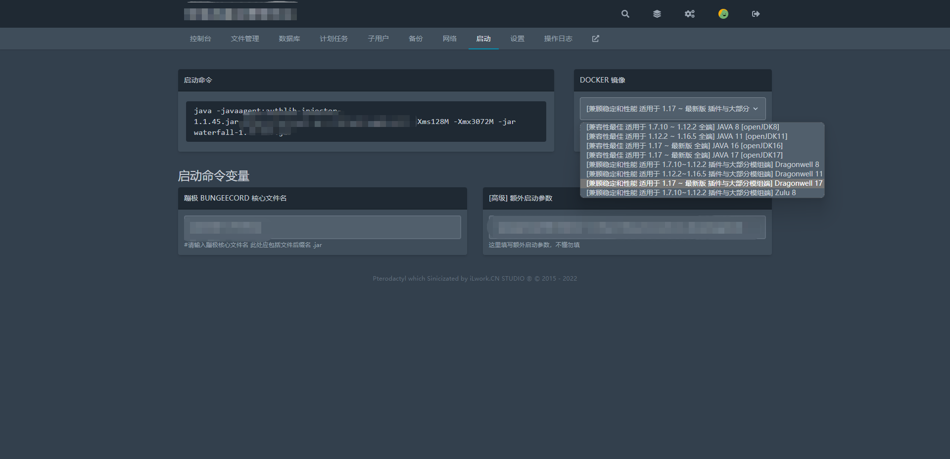 面板截图 红色打码区域为自定义区域,为避免打广告嫌疑故打码,Docker 镜像是我自定义的 , 官方没有截图中的部分 Docker 镜像与其介绍