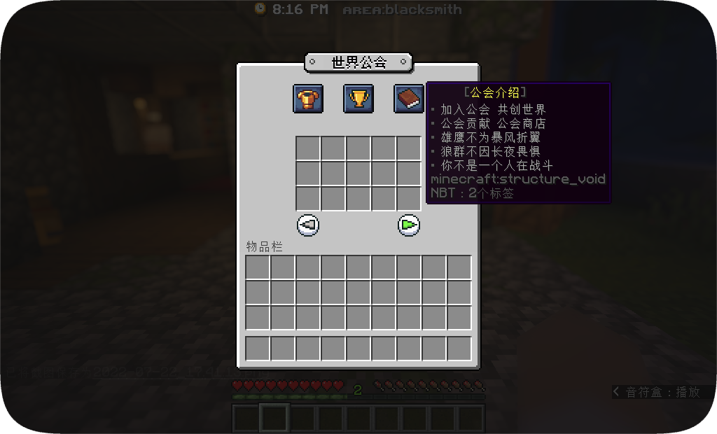 |          服务器简介服务器鉴于上一周目的不足重新搭建打造一个更完美的服务器并在2022/7/22打造完工,服务器目前还处于不断更新状态,服务器添加众多插件并借鉴其他热门特色玩法让玩家们体会到不一样的原版生存并让玩家体验到不一样的游戏体验! 由于服务器目前处于开荒状态,在线人数较少,所以我们希望有更多常驻玩家支持我们,我坚信服务器会打造的更好! 游戏内可以随意使用红石,服务器全面开放各种红石机器,为科技生电玩家提供便利! 比起游戏体验,我们同时还注重细节!无论是客户端游戏体验流畅度,还是服务器延迟我们会不断改善的更好! 服务器一切以玩家体验为主,如果玩家在游戏中有何不满的地方可以提交给管理,服务器将会加强关注与改善! 服务器同时还添加玩连锁挖矿与一键砍树让玩家摆脱枯燥的挖矿与砍树! 请玩家记得加服务器官方 QQ群:960048000 以便获得服务器实时信息! 本服含有超多特色玩法赶紧加入服务器通过战斗与征服,生产与经营成为最富最强的你吧! 服务器为了给新玩家一个好的游戏体验同时还编写了服务器游玩攻略WIKI让新玩家更易融入服务器.        服务器特色         超多趣味玩法等你探索! 服务器还有许多特色玩法:精英怪,强化,宝石,宠物,玩家职业,个人技能, 个人仓库,在线奖励,每日礼包,抽奖,全球市场,每日任务,每日副本等超多玩法等你探索!!!      服务器图片 主城精致建筑实拍   与可爱的NPC交流  公会GUI系统让你操作更方便  每日任务获得更多奖励         赶紧加入我们吧!   |