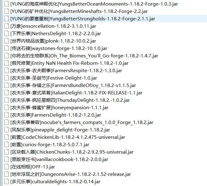 能否提供一下插件和mod的列表