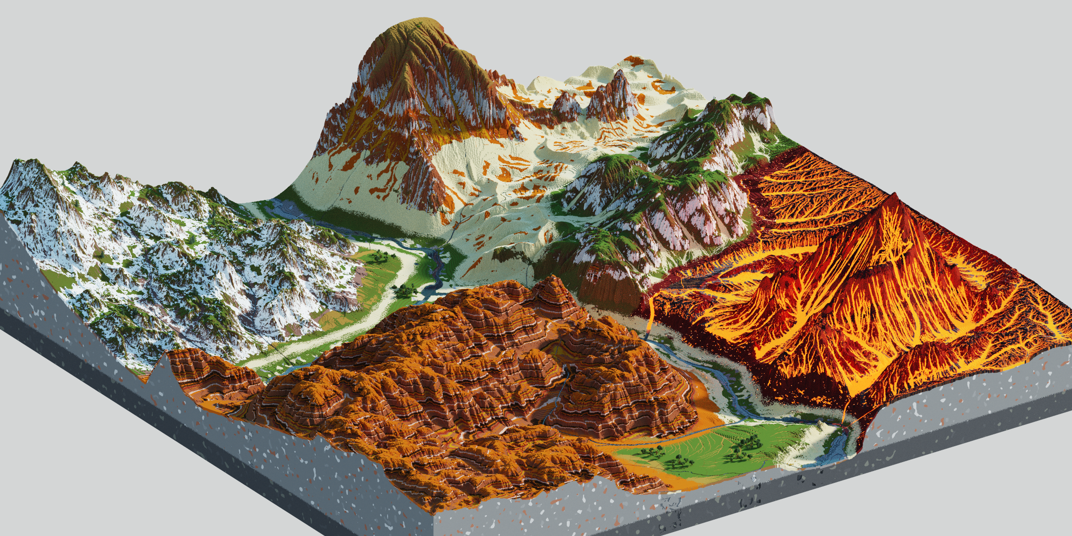 苍雪覆崖,荷歌仲夏。岩熔三里,菌光无瑕。泠泠月上寒以极高的地形水准与艺术技巧创作出了这一标致的地形作品,具有极强的综合观感。