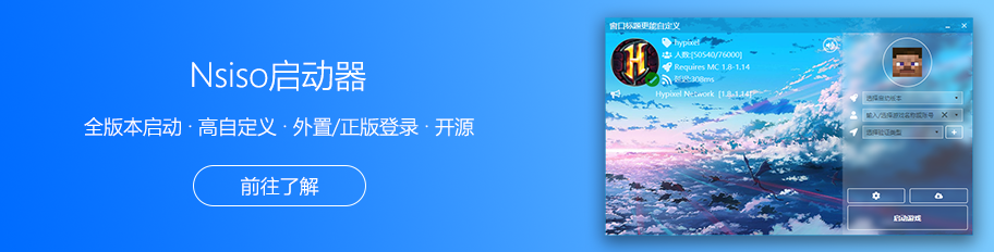 帖子标题:[全版本]Nsiso启动器 —— 1.14全扩展启动|高自定义|外置/正版登陆|开源