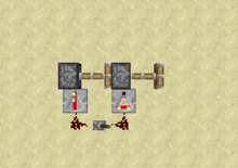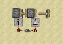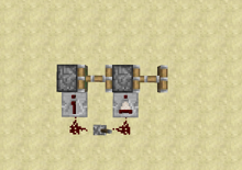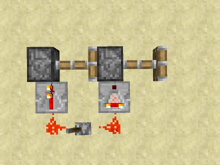 Chaining repeaters and comparatorsAs previously mentioned, in each game tick first all repeaters will update, and afterwards all comparators will update. However there’s still the following question: If two repeaters update within the same game tick, which one updates first? The answer to that question is: The repeater that first recieved its input one r-tick ago, will also output first. This makes repeaters and comparators even more useful, since the following things can be done: