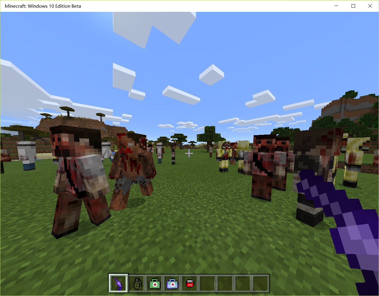 | 物品 左轮手枪——僵尸掉落(10%) 医疗包——就是金苹果了啦 货币(绿宝石)——僵尸掉落 士兵套装——村民交换 罐头——僵尸掉落 村民交♂易 一货币交换5子弹 一钻石快换士兵套装 一绿宝石块换手雷 |