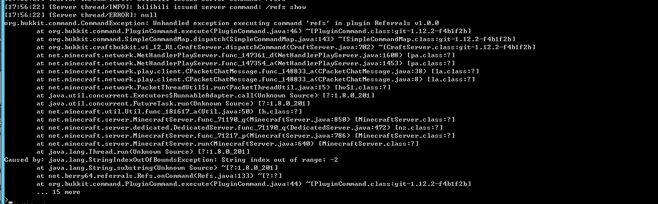 org.bukkit.command.CommandException: Unhandled exception executing command 'refs' in plugin Referrals v1.0.0