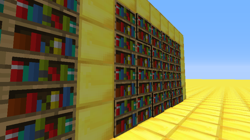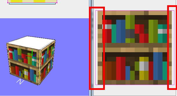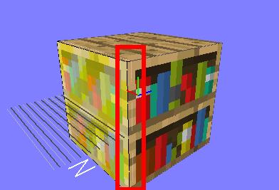 :不过还是会有一点点小BUG,因为模型是凸出去的,所以如果多个这样的书架摆在一起,就会有重叠的模型,重叠的材质