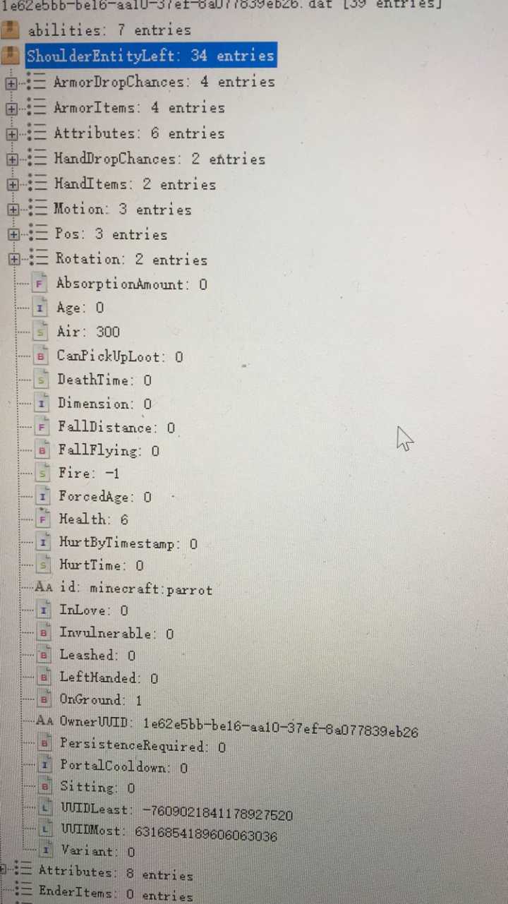 可能因为只有鹦鹉可以站在玩家肩上,所以……不看id