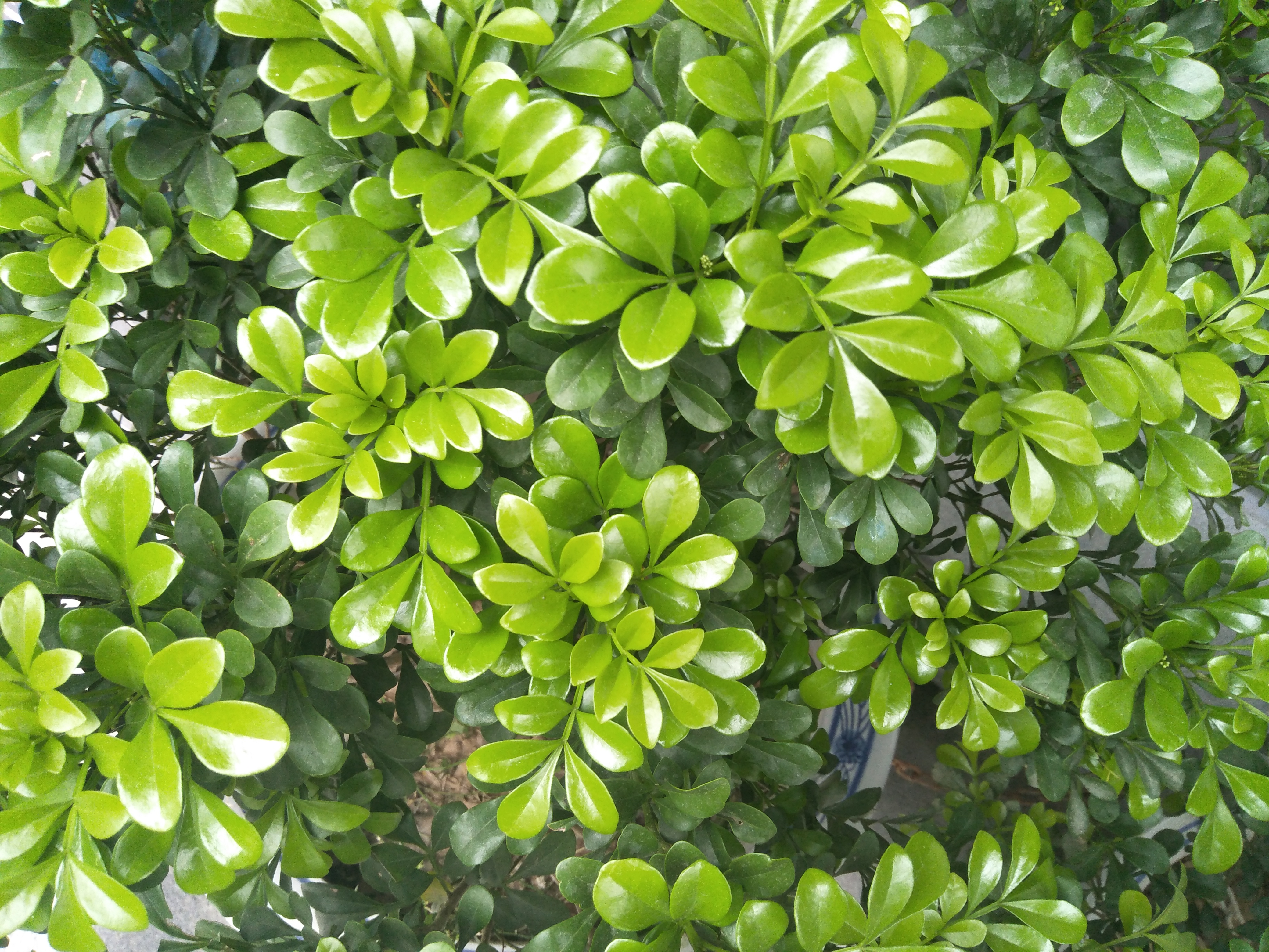 叶子被水清洗后,显得发亮