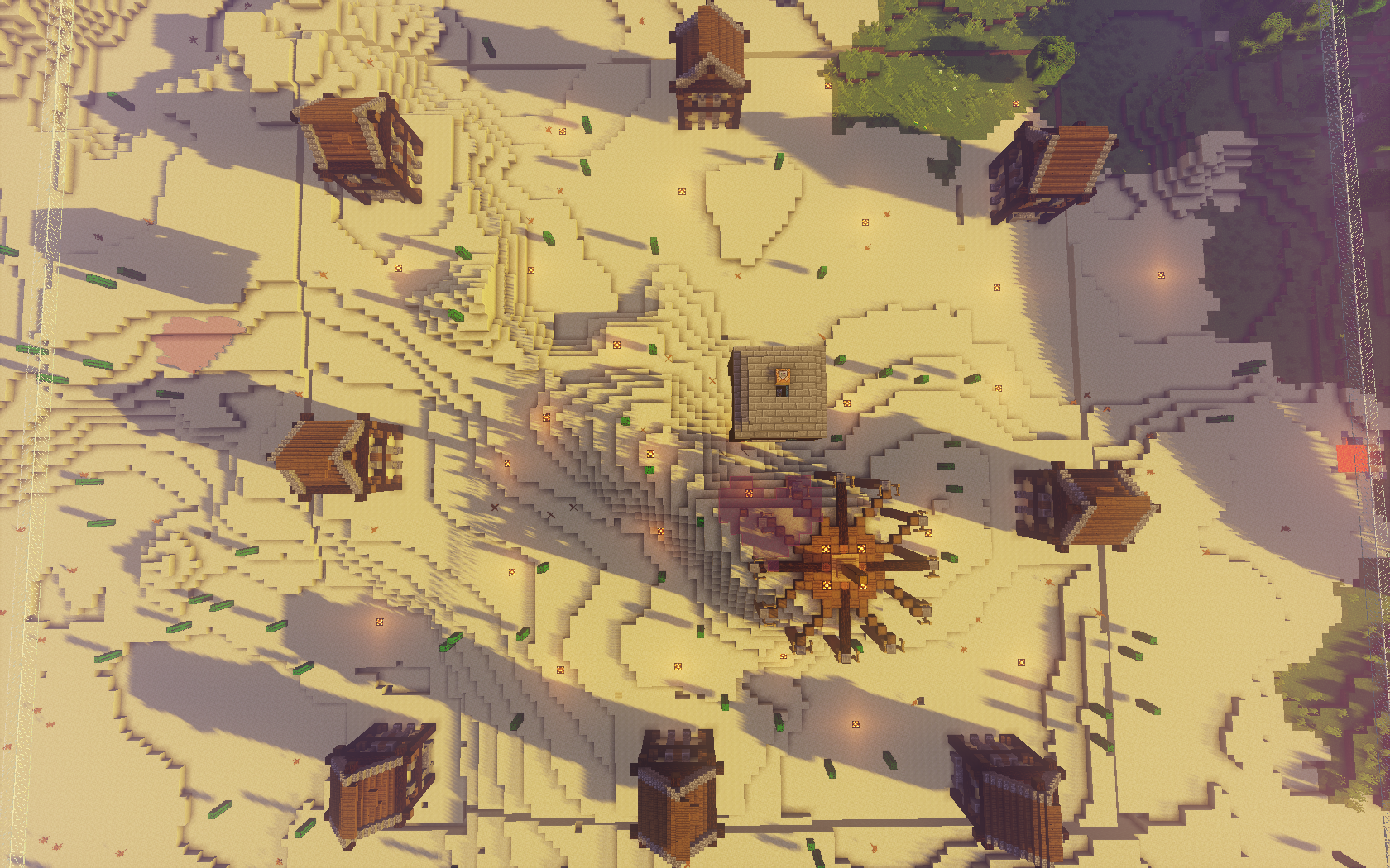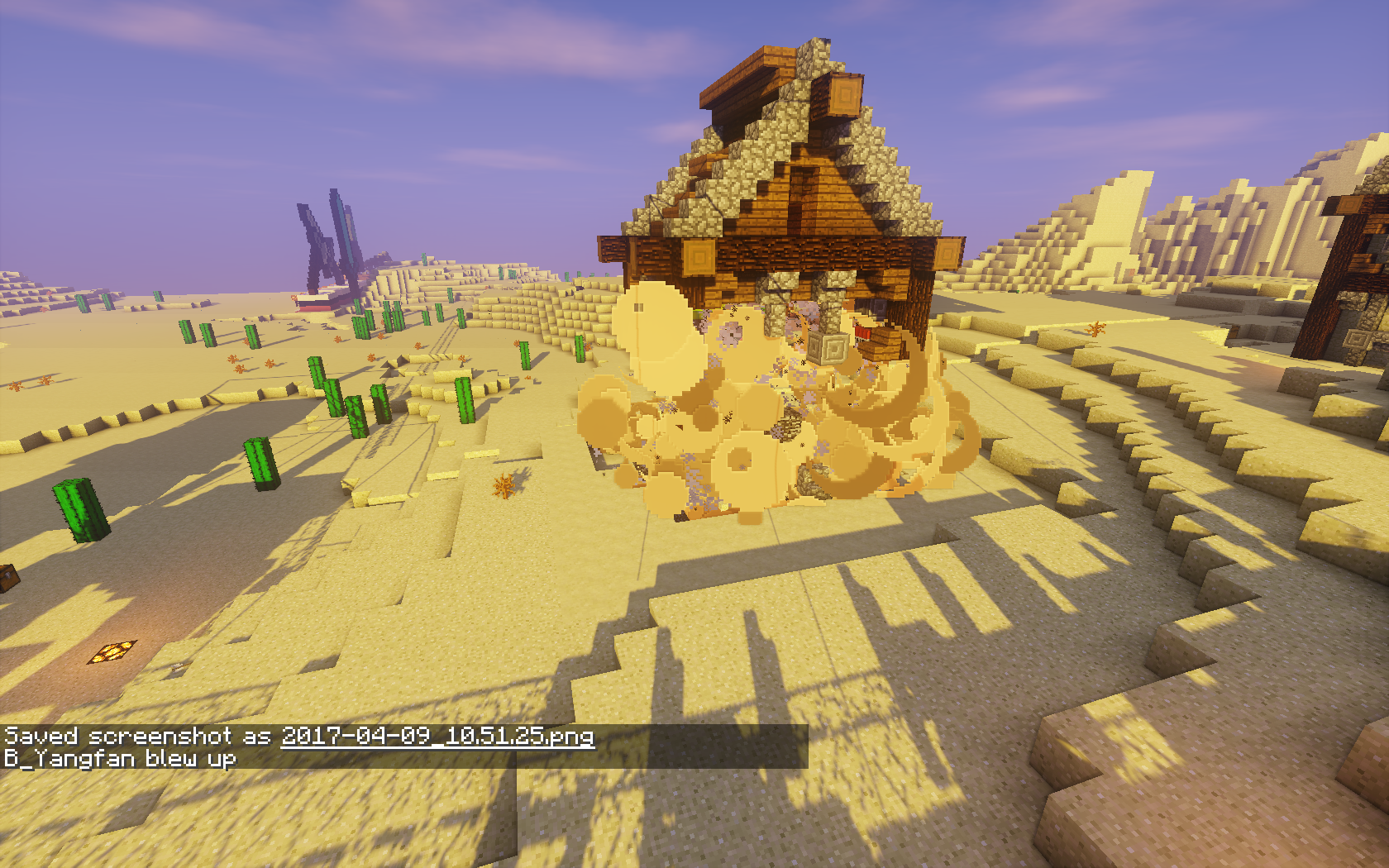 具体实现上,因为tnt对地形破坏力巨大,我采用两种方式,一是用屏障方块尽可能堵住tnt防止乱飞,二是用结构方块,游戏结束后重新加载,恢复局部地形
