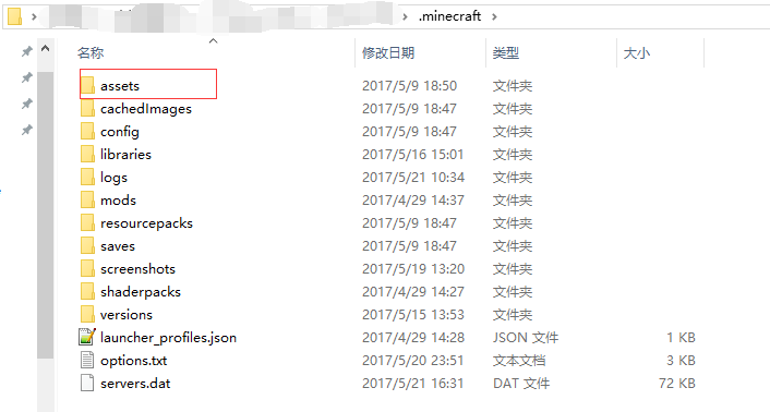 我们需要提取在.minecraft文件夹下的这两个文件:assets(资源文件) 和 1.11.2.jar (游戏核心)