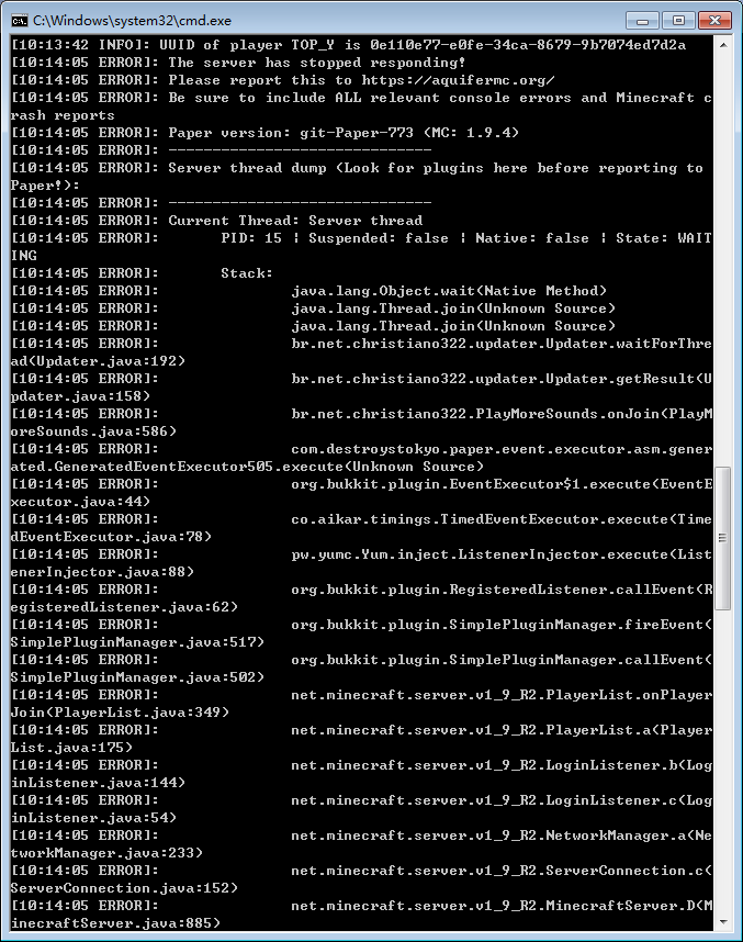 - [10:14:05] [Paper Watchdog Thread/ERROR]:                 br.net.christiano322.updater.Updater.waitForThread(Updater.java:192)