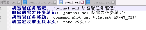 然后再打开default文件夹中的event.yml和conditions.yml和journal.yml