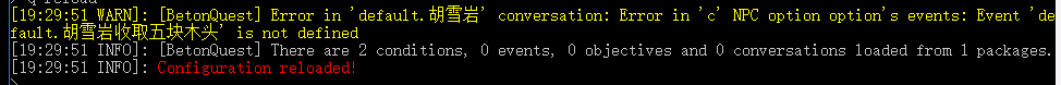 BetonQuest一点编辑教程前言:————————————————————————————————————————————————————准备工具: BetonQuest/Citizens/MythicMobs 站内贴: BetonQuestCitizens MythicMobs原帖: BetonQuest Citizens MythicMobs站内WIKI翻译贴: http://mcbbs.tvt.im/thread-676922-1-1.html
