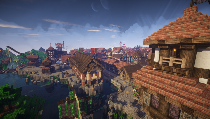 这里还有一个中世纪风格的建筑存档,地图文件比较大,不过里面有很多中世纪建筑,也是有内饰的。楼主可以先到原帖地址看一看图片(如果不能看再告诉我):https://www.planetminecraft.com/project/the-biggest-and-most-realisitic-medieval-world/