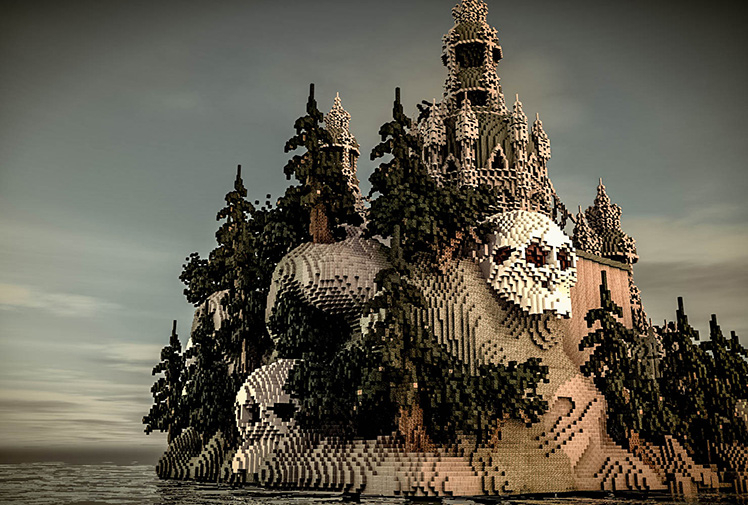 The skulls were a late addition, an attempt to further differentiate the build and add an extra, immediately striking feature. “The same with the birds,” says ByMrCraft, “which were added to the finalised structure to give colour and create a more mysterious environment.”