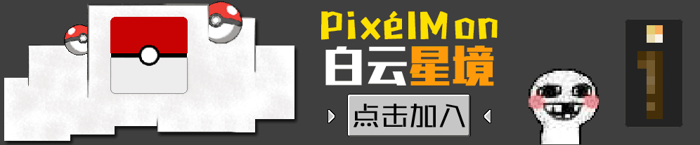 第四次开服了,前面的开服只能说是为之后做铺垫,失败了才会做的更好!每一次的汗水,金钱,时间的付出,只为博得玩家们对我们的认可。这次,我们向着精灵宝可梦开进,国内的PixelMon mod已经停更了,但我们没有放弃,从外国网站翻墙无数,终于找到了另一个团队接手更新的Pixelmon !现在已经更新到5.1.8了,我们的付出只为让玩家更好的体验Minecraft,服务器目前是新服,处于开荒阶段,宣传也不是很到位,所以人并不是很多,但是我们并没有放弃,白云星境,欢迎您的到来!