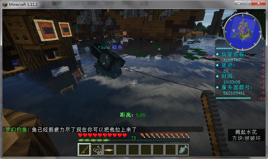 是否觉得原版钓鱼很无聊?服务器中添加了很多鱼类,不同的鱼饵可以钓到不同的鱼,如果钓到稀有鱼类,还将会触发公告哦!