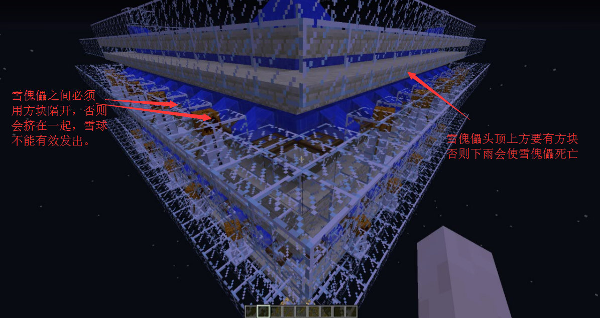半格高度是可以发射雪球,但雪傀儡准头太差,恐怕一大半雪球都会砸在半砖上。当然,这也是个思路。