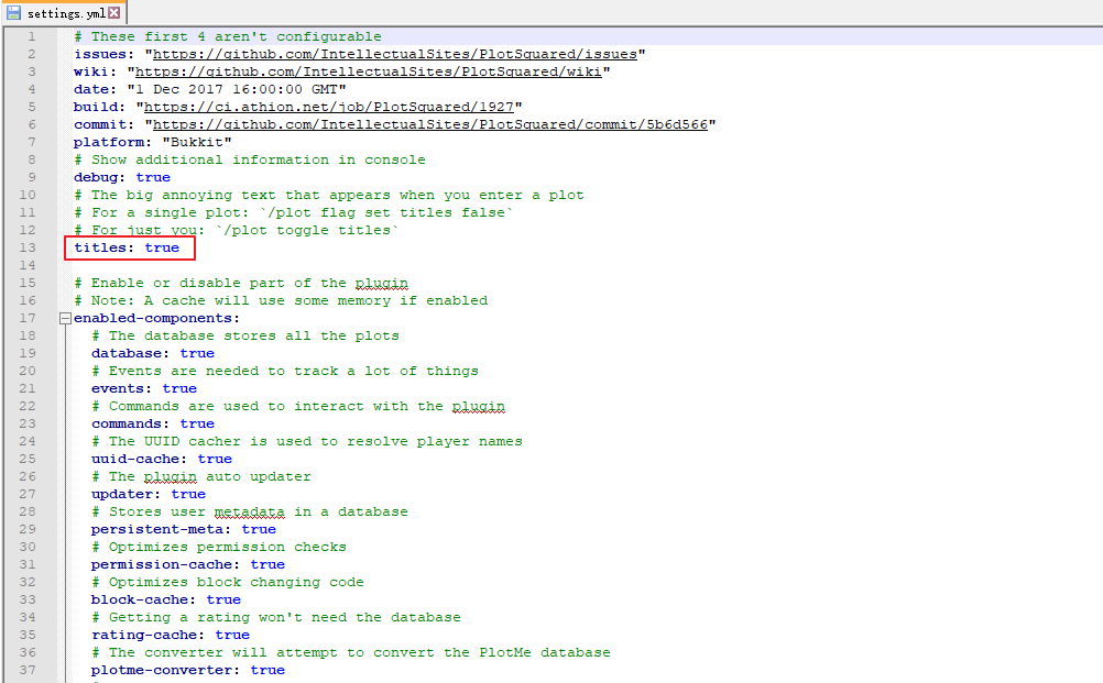 把plotsquare/config/setting.yml中的title项后的参数从true改为false