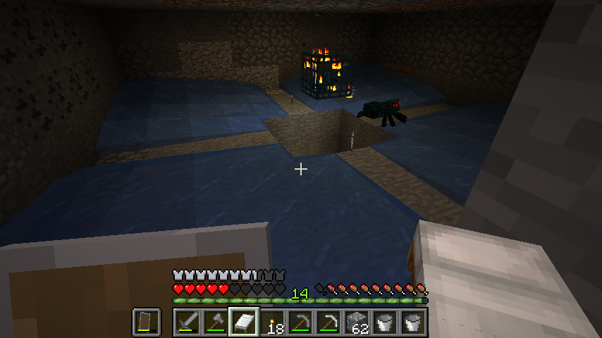 按照网上的教程做了个洞穴蜘蛛刷怪塔,到最后放水流的时候,我突然发现......这水流和网上的效果不一样啊!